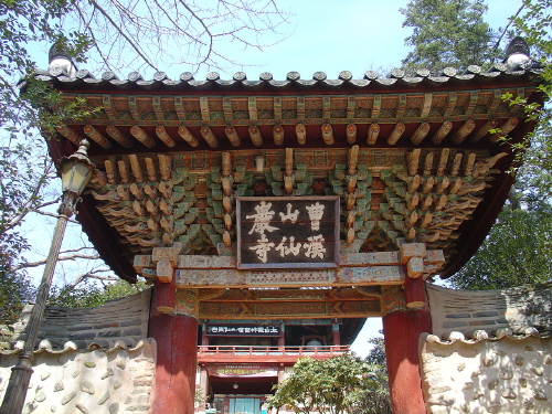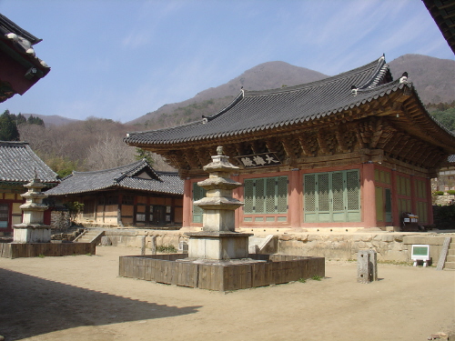 대웅전 앞마당에서 일주문 넘고 강선루(降仙樓) 지나서
