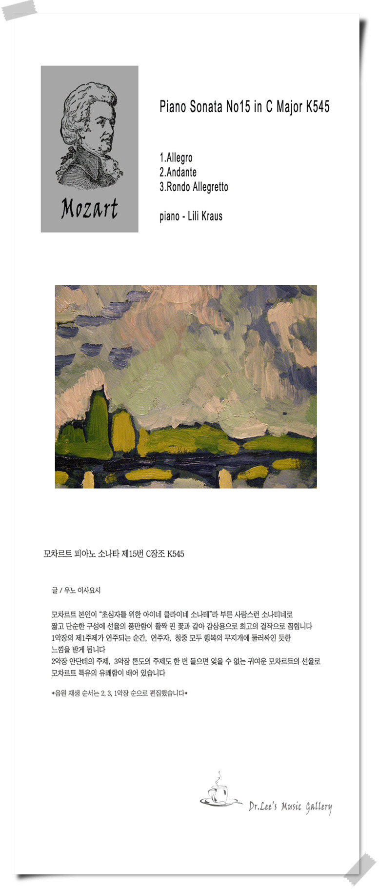 | » | 모자르트 피아노 소나타 제15번 C장조 K545 | 강학희 | 2012.06.09 | 630 |