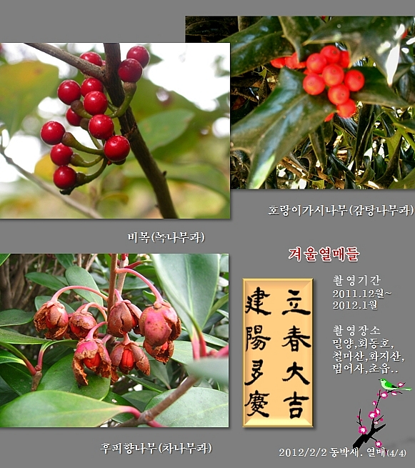 | » | 『봄을 기다리며』한겨울의 열매들.... | 동박새 | 2012.02.01 | 231 |