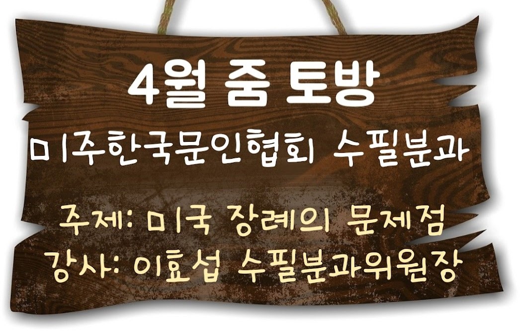 » 미주문협 4월 수필 줌토방/ 이효섭 수필분과위원장 file 미주 2025.03.28 5242