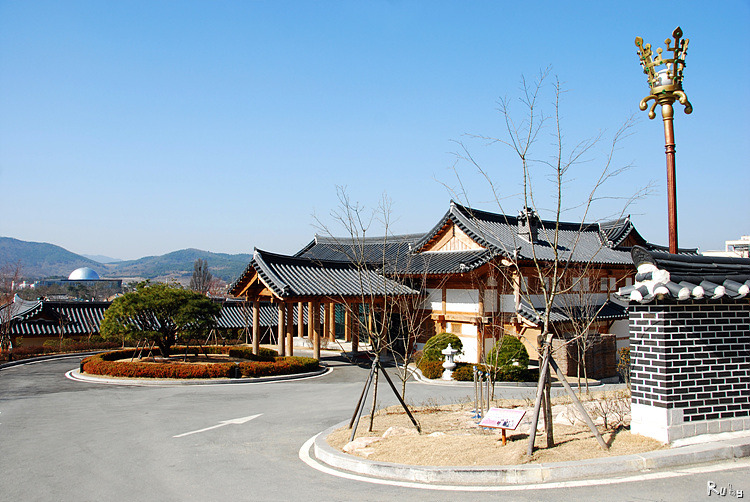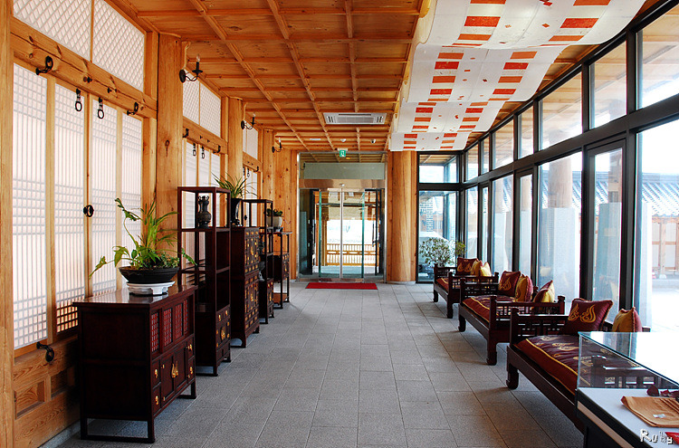 처음 들어가면 만나게 되는 곳은 관리동. 로비, 리셉션데스크, 레스토랑이있는 관리동은 들어오는 사람들에게 라궁이란 이름에 어울리는 화려함을 보여준다.