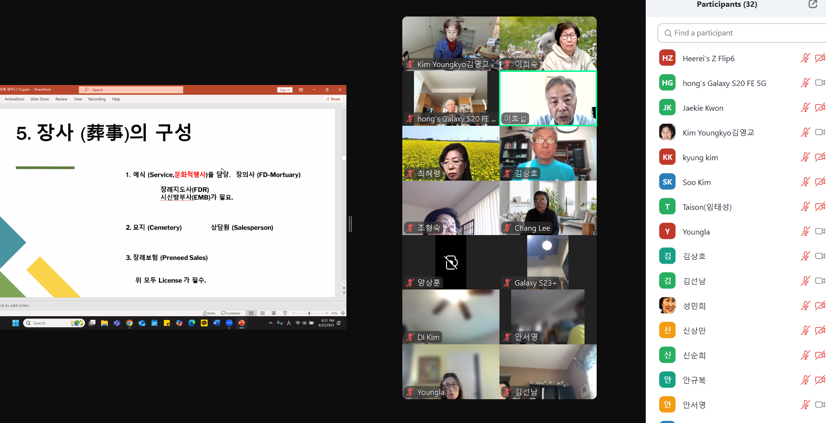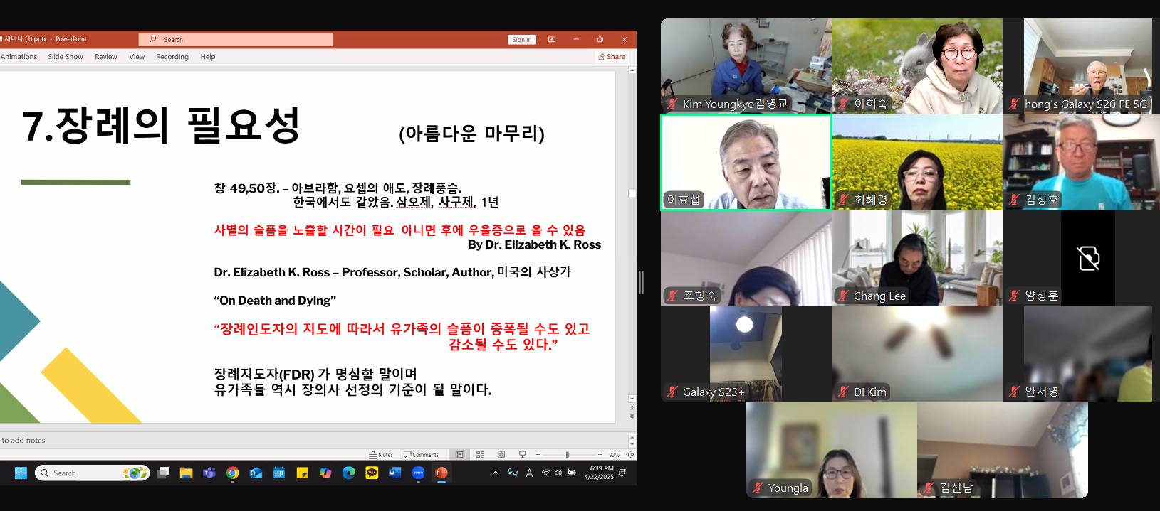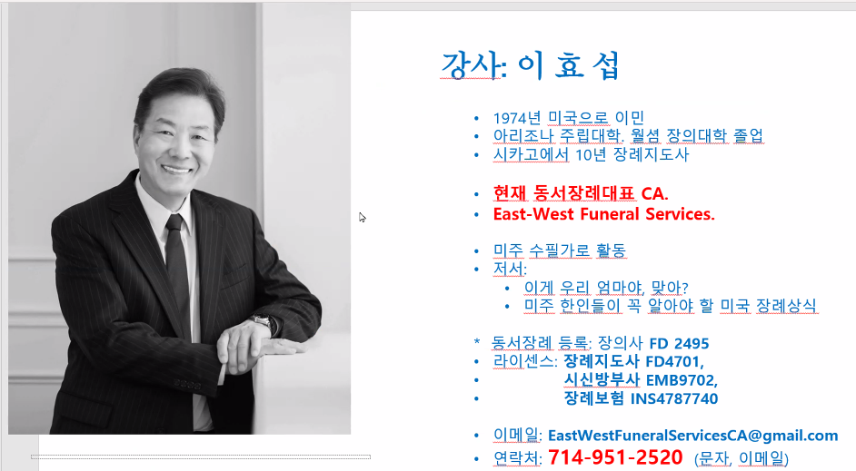 미주문협 수필분과 줌토방 강연/ 미국장례상식