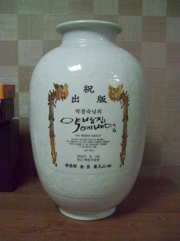 약방집 예배당 출간기념회 날 소설가들로부터 받은 키 1미터의 커다란 도자기.
