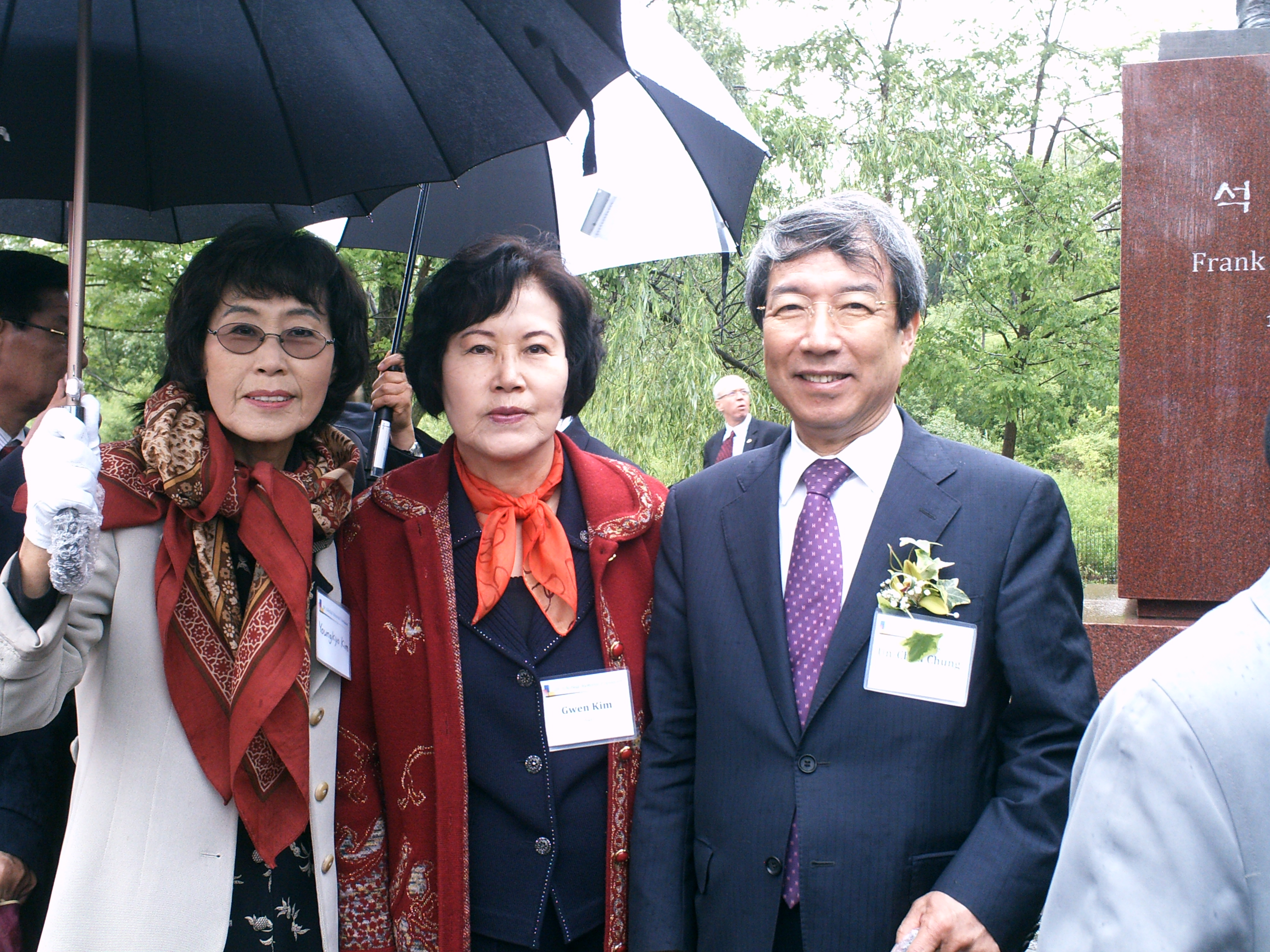비가 왔지만 우산을 받쳐들고 정운찬 전 국무총리와 함께