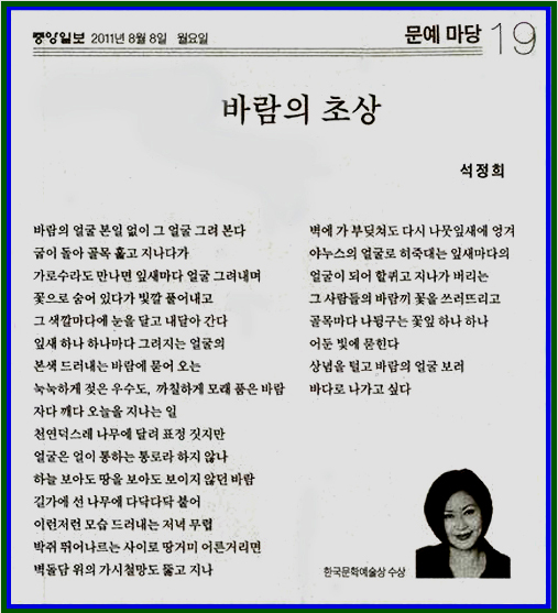 중앙일보<문예마당>시 : 바람의 초상/석정희