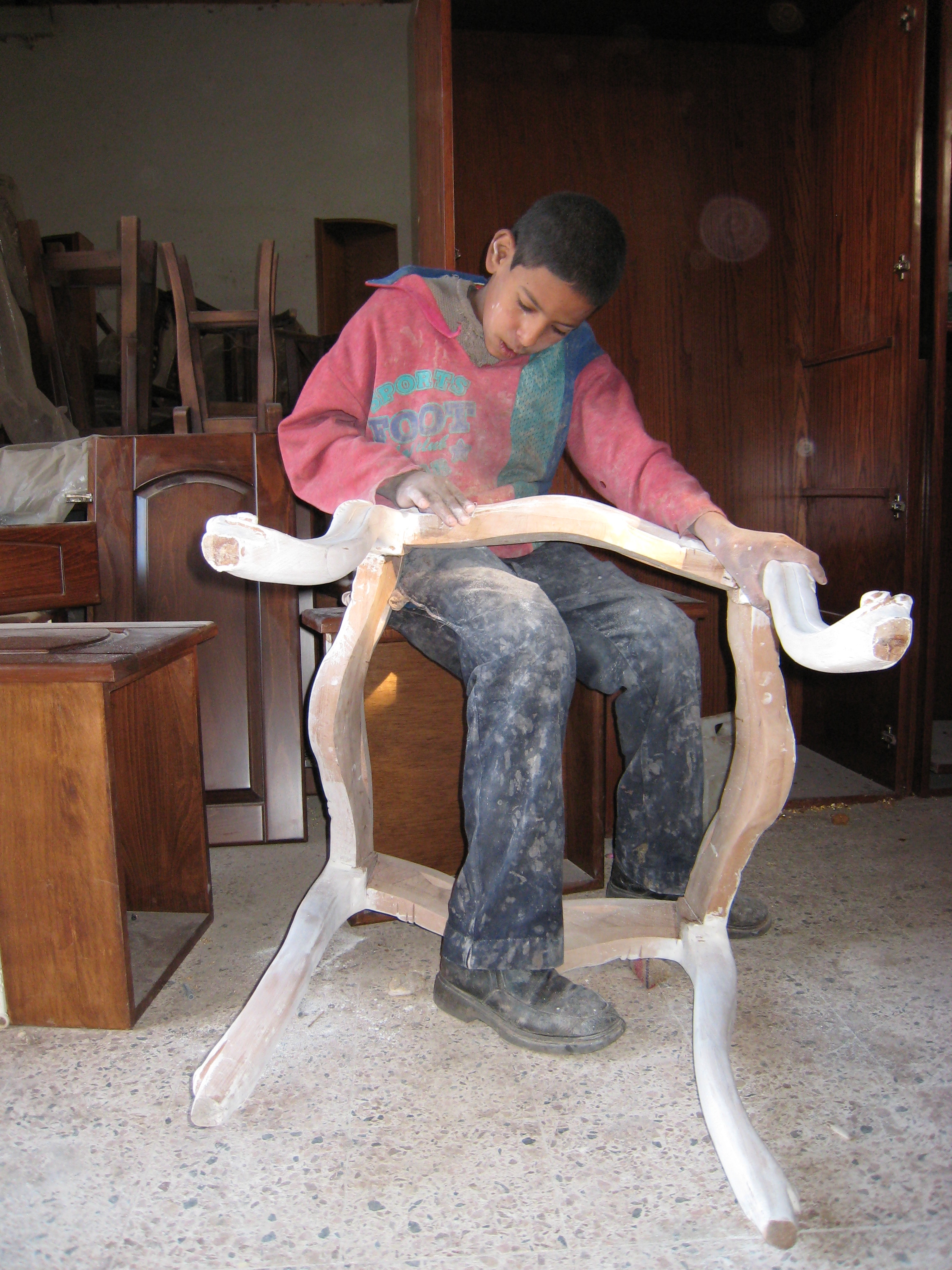 가구공장에서 일하는 소년